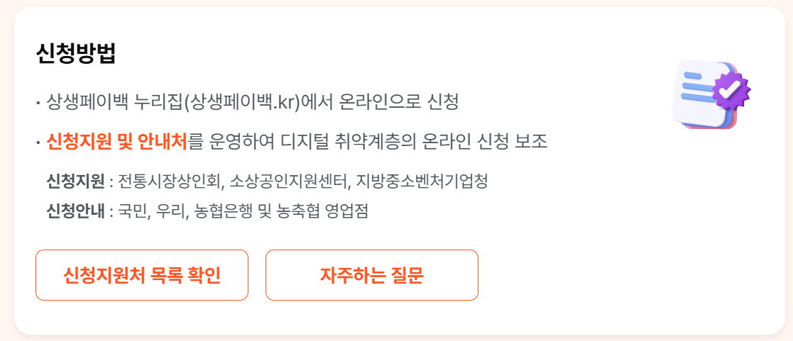 - 신한카드: '혜택/이벤트' 메뉴에서 '상생페이백' 검색 → 기간 확인 후 신청