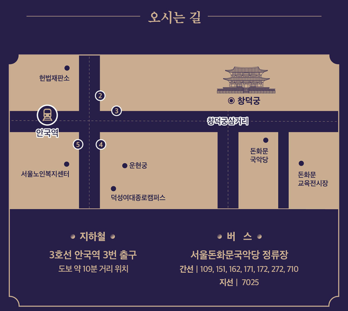 - 코스: 전문 해설과 함께하는 약 100분간의 특별한 궁궐 투어 및 전통 공연 관람.